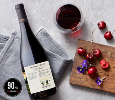 Vinaforé® Sonoma Coast Pinot Noir is made from 100% Pinot Noir and is a blend of two different vineyards from 777 and 828 clones. The 777-clone vineyard located in the southern Los Carneros sub-appellation creates wine with a distinctive violet aroma and lifted acidity. The 828-clone vineyard is located in the Russian River sub-appellation that brings bright cherry fruit and velvety textures. Each vineyard lot was fermented separately to allow the individual components to develop.