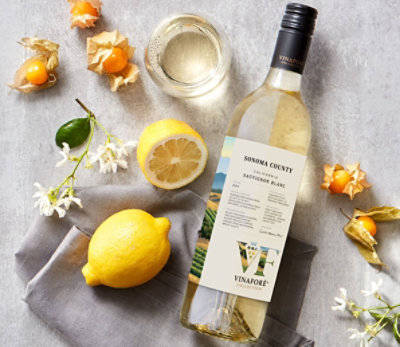 Vinaforé® Sonoma County Sauvignon Blanc is 100% Sauvignon Blanc from two different vineyards within the Sonoma County Appellation. One vineyard is located in the cooler Los Carneros sub-appellation in the southern end of Sonoma County near the San Pablo Bay. This site produces grapes with bright and refreshing acidity and vibrant fruit. The other vineyard is located in the warmer Dry Creek Valley sub-appellation in Northern Sonoma County that produces grapes with riper fruit flavors and richer mouthfeel.